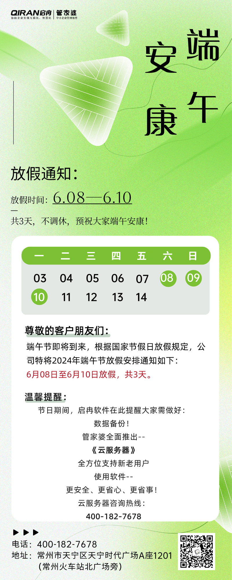 公告 | 啟冉軟件端午節放假通知