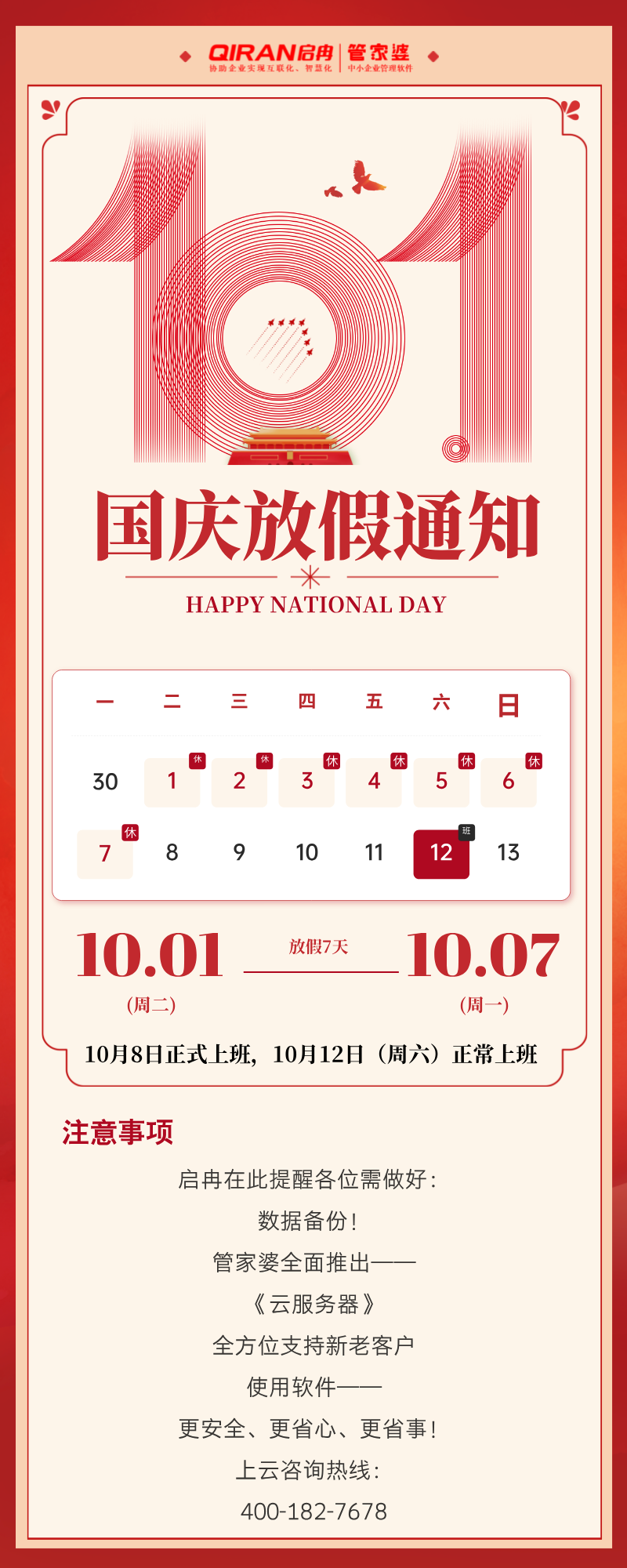 公告 | 啟冉軟件國慶節(jié)放假通知