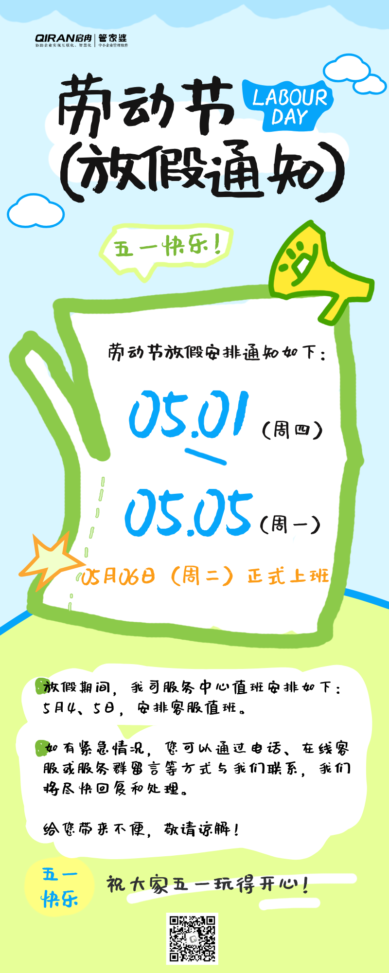 公告 | 啟冉軟件勞動節(jié)放假通知