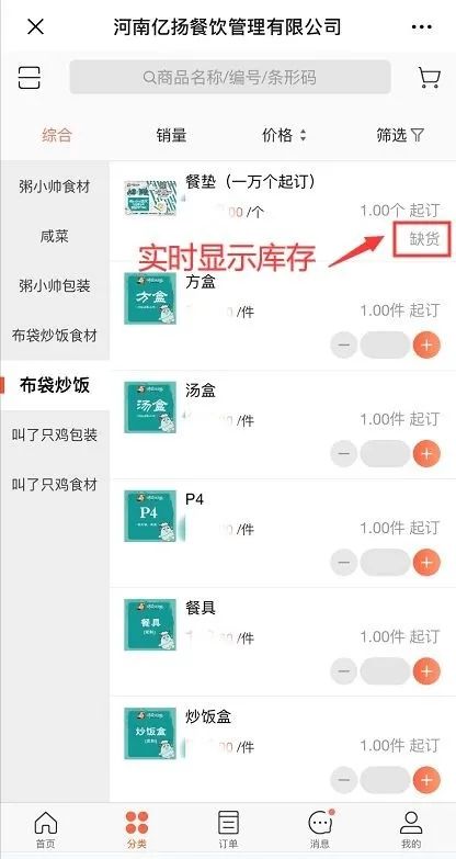 億楊餐飲訂貨寶營銷訂貨頁面示意