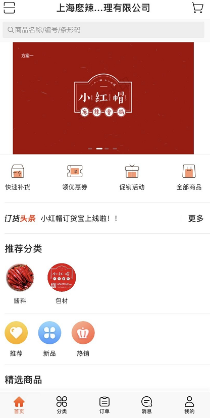 小紅帽餐飲訂貨寶后臺示意